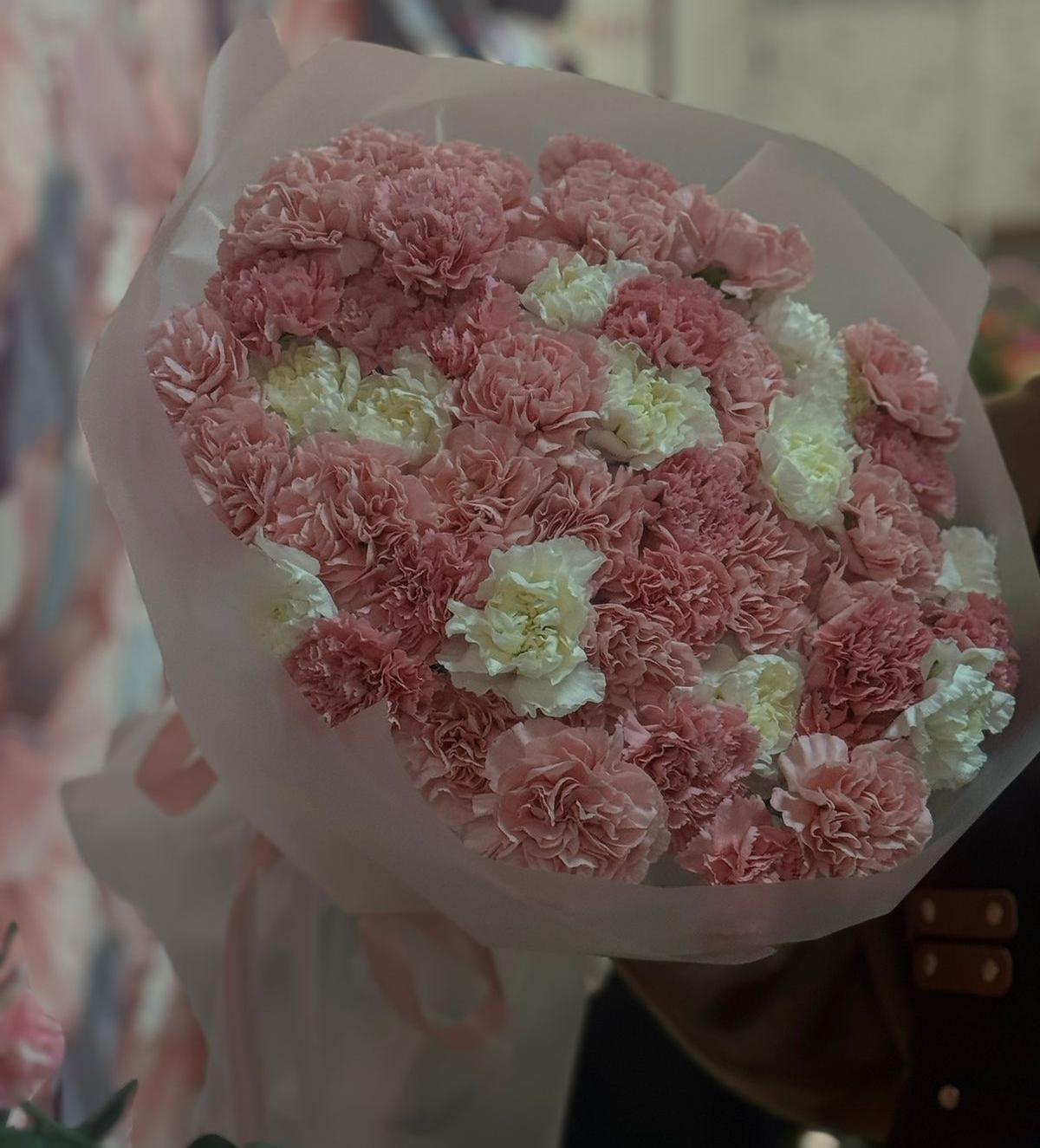 Нежный букет из 51 диантуса, возможны другие цветовые сочетания
