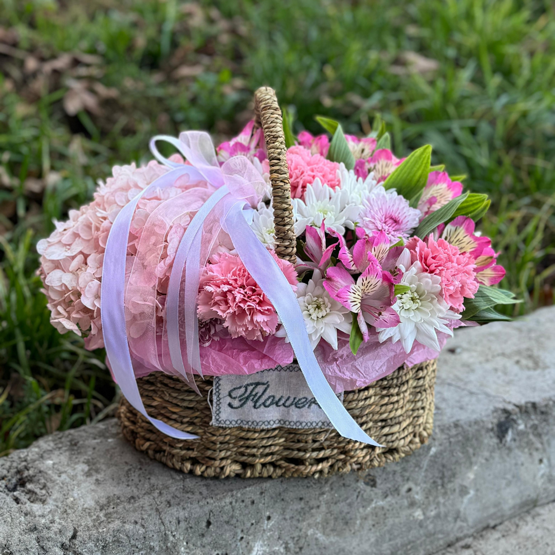 Корзинка в розовых и белых тонах